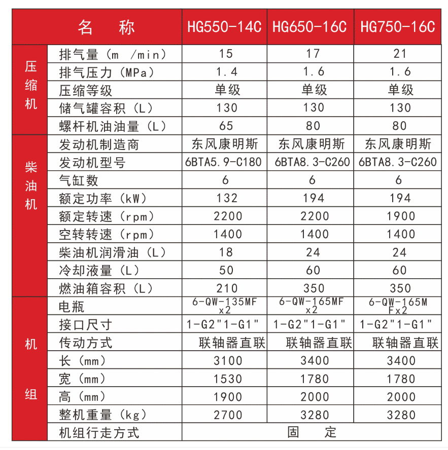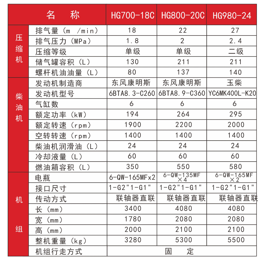 柴驅(qū)-HGT中低壓系列移動(dòng)空壓機(jī) HGT460、HGT550、柴移