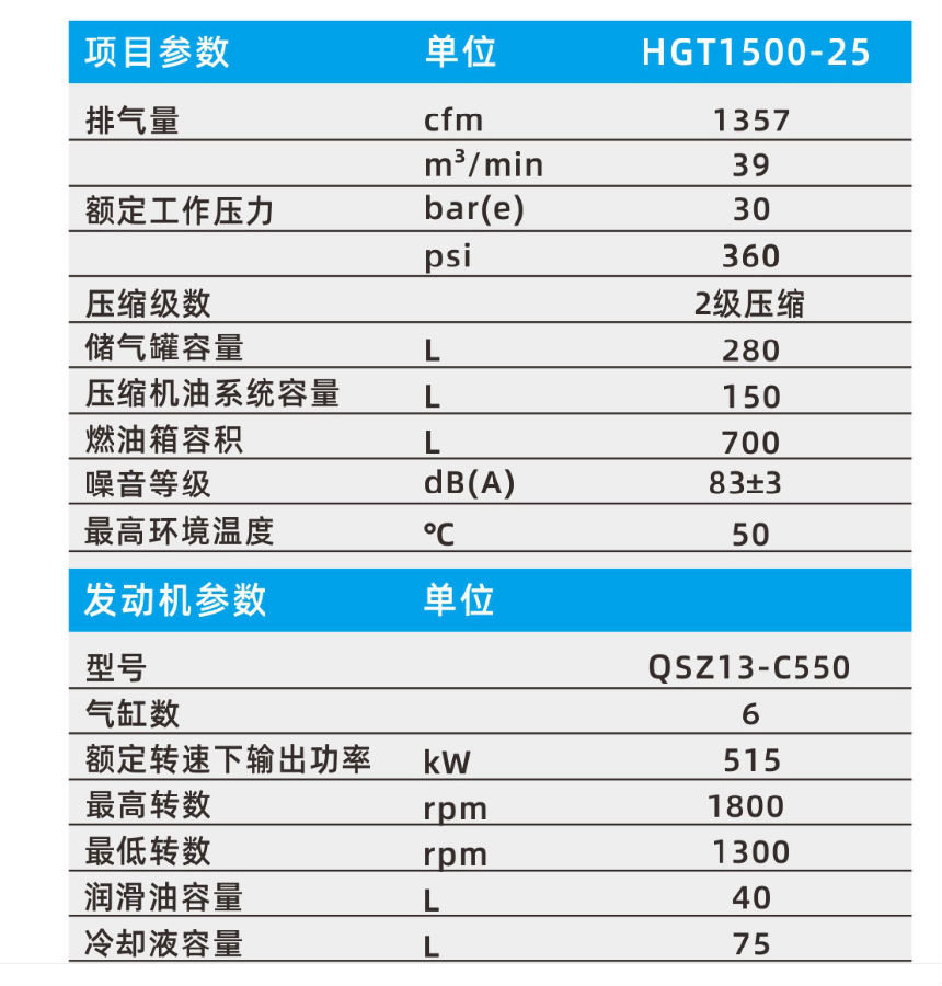 柴驅-HGT兩級壓縮高壓系列(雙工況)HGT700、HGT800、HGT950 柴移