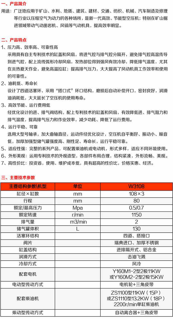 W3108礦山用活塞式空氣壓縮機(jī)